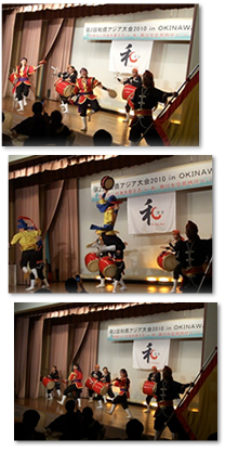 晚宴时,由冲绳地方的业余团体表演助兴节目「琉球EISA太鼓的表演」,这个表演非常精彩,而且让我对琉球人有了更进一步的认识。